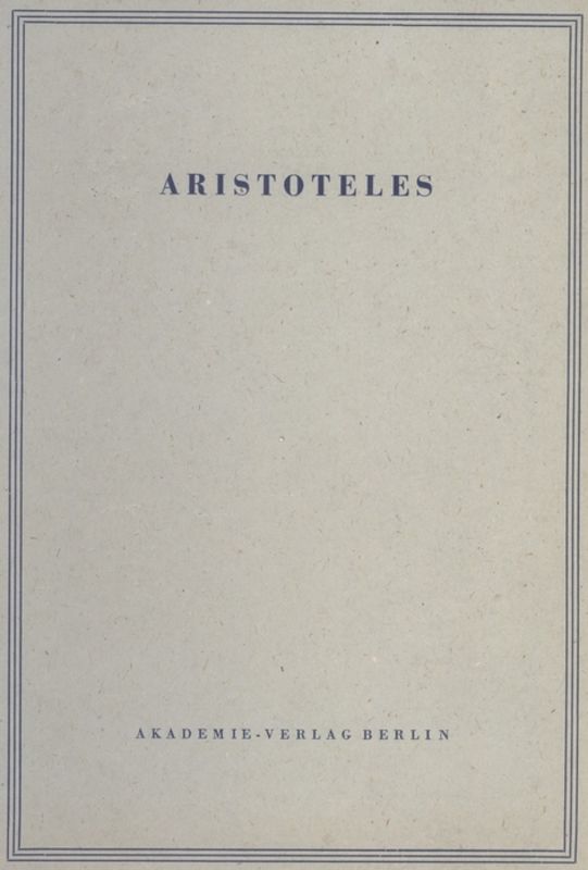 | Series/Journal: | Aristoteles v384-v322, Werke in deutscher Übersetzung. Opuscula ; T. 1